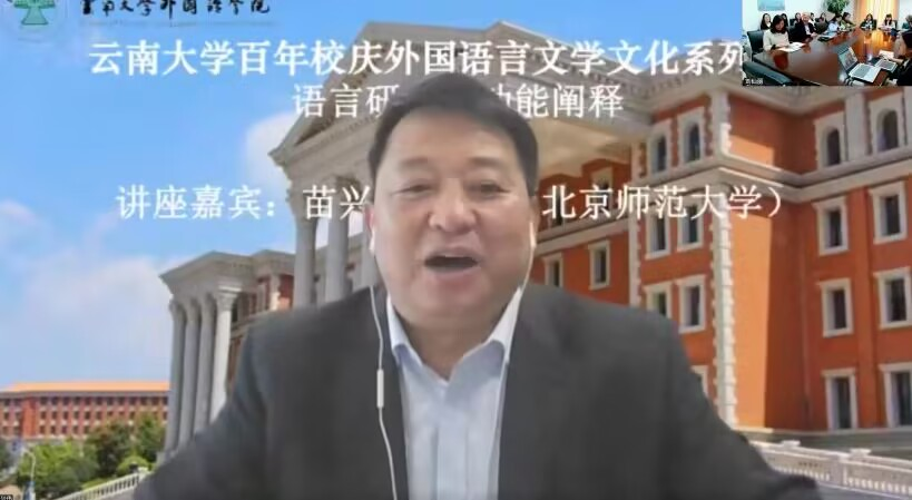 2022年12月2日,北京师范大学外文学院教授、博士生导师,院长苗兴伟教授应邀为万象城体育|平台师生做了题为“语言研究的功能阐释”的精彩讲座。本次讲座是“云南大学百年校庆外国语言文学文化系列讲座”暨“云南大学英语语言文化与翻译研究中心系列讲座”之一。